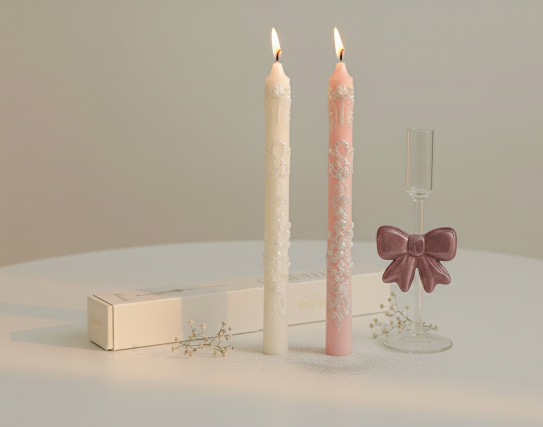 Elegant classical candle with delicate embossed detailing, designed to add a refined touch. Perfect as a decorative accent or a thoughtful gift.
